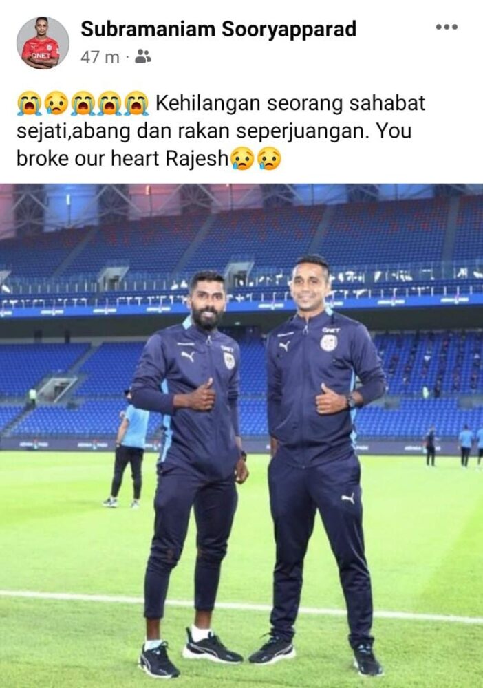 “Takziah diucapkan kepada keluarga Rajes Perumal, yang meninggal dunia awal pagi tadi. Ia adalah hari yang menyedihkan untuk kami semua di PJ City FC.